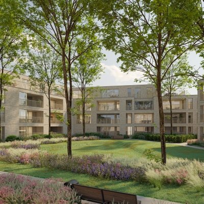 Waar ooit beton en leegstand heersten, komen vandaag 65 appartementen, 5 woningen, een polyvalente ruimte en een karaktervol kantoorgebouw. Ondergrondse parkings en fietsenstallingen zorgen voor autoluw comfort. Tussen het groen blijft erfgoed zoals de iconische schouw zichtbaar, als blijvende link met het verleden.